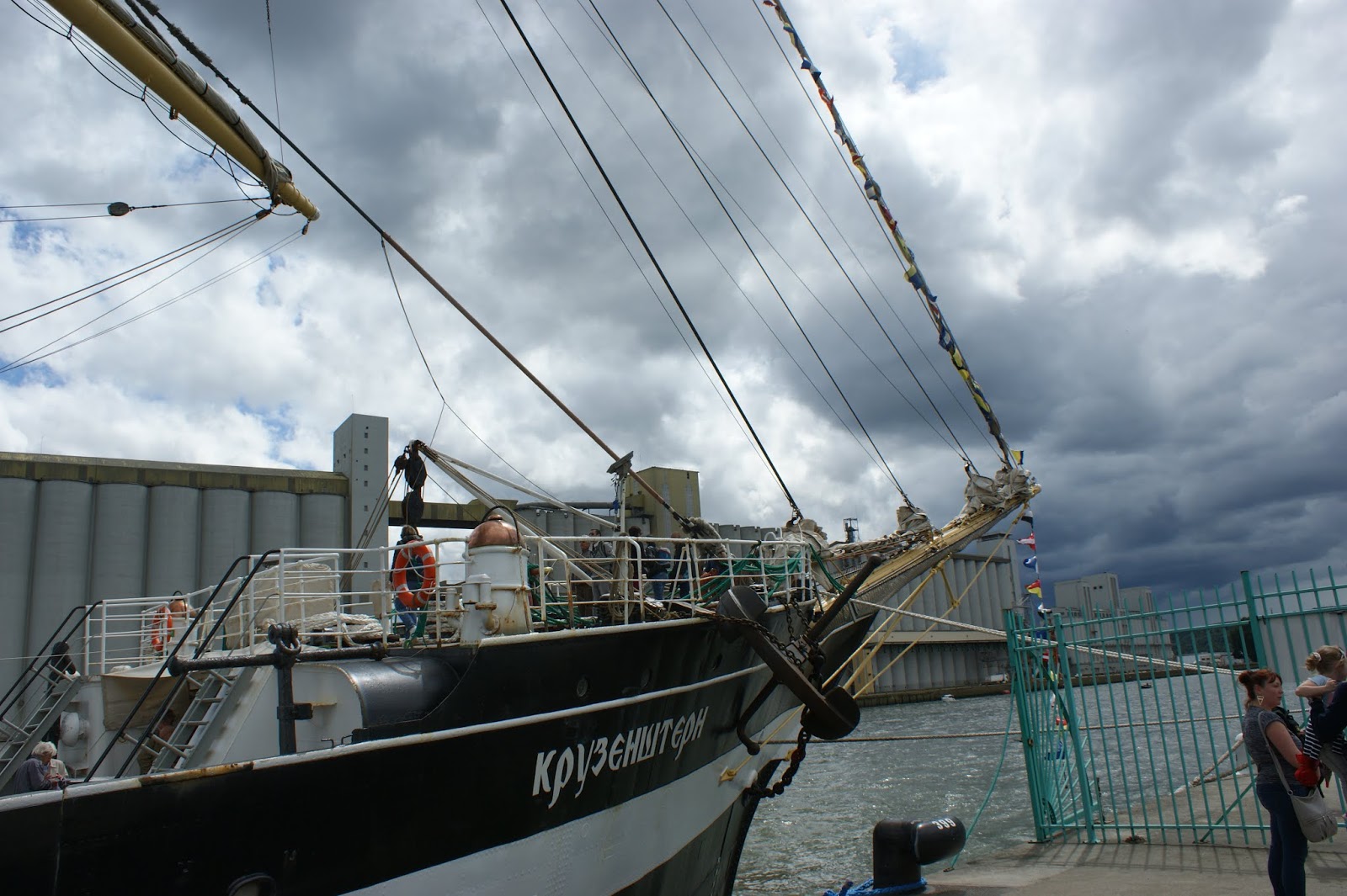mais même comme cela la journée, ça fait du monde, avec des queues à l’entrée côté pont de Guillaume le C. L'entrée est encore gratuite mais sinon tout est payant sur les quais Pipi 50cts Camping sur l’eau.... 70€ la nuit. À l'entrée gratuite il y a une fouille systématique et minutieuse... Les soirs on a manqué non seulement les concerts mais aussi les feux d’artifices, ça s’arrêtait le dimanche de la fête des pères au cœur de pirate. Je vous préviens quand même il n'y avait qu’un seul grand ! enfin moyen, voilier anglais....le Tenacious....et sinon quelques navires de guerre. Mon préféré fut le Sedov à cause des marins russes si jeunes... à l’origine allemand (comme l’américain Eagle et le russe Kruzenstern que nous avions visités la veille ) capture russe après la seconde guerre mondiale... À propos de jeunes on a discuté avec ceux qui nous ont présenté le projet Manta de l’association Sea Cleaners pour débarrasser les mers du plus gros de la pollution plastique le Manta un défi technologique....https://www.theseacleaners.org/