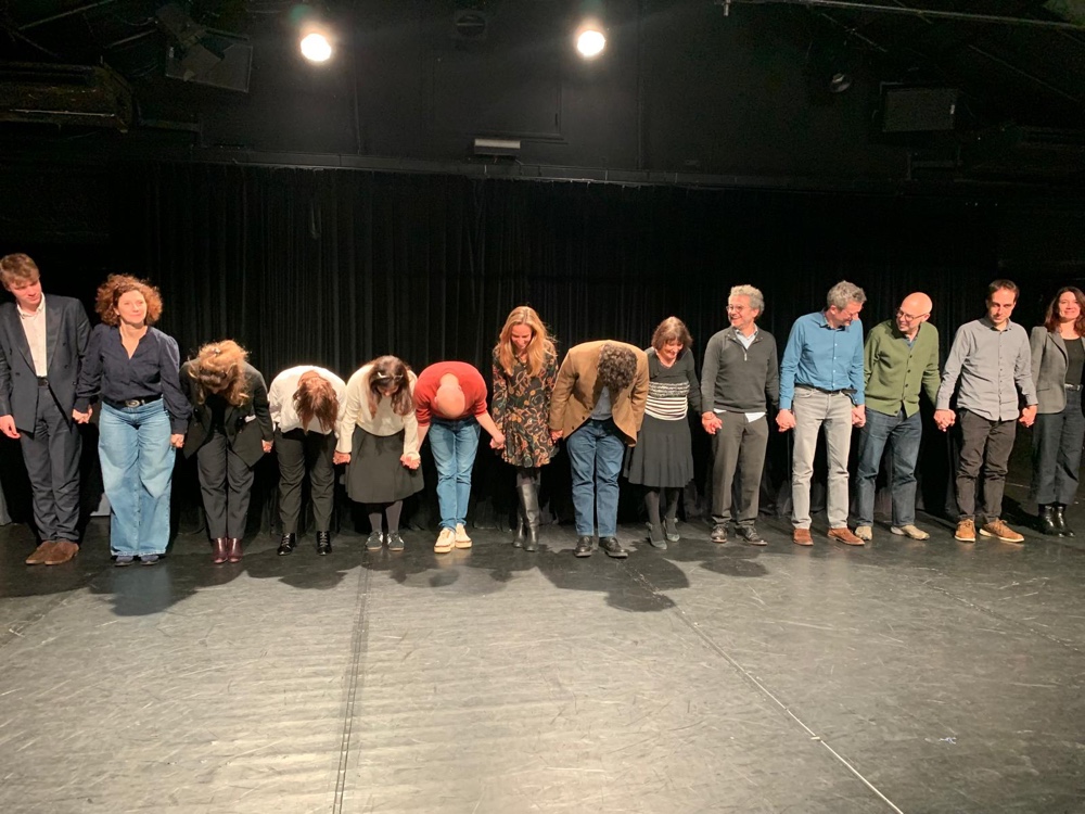 🔥C’était comme une leçon de citoyenneté un régal, pour le jeu des comédiens, chacun avec les yeux qui brillent aux non dits signifiants, et aux ruptures de temps, de rythme… Passé présent et avenir fiction et théâtralité comme dans un rêve avec une scénographie et des costumes de « ouf » avec des changements de costumes d’accessoires de personnages totalement différents pour tous : Reine, légiste, enfants, vieux savant, femmes en couple qui s’aiment et des danses des chansons qu’on avait envie de partager avec eux, on cherchait presque les surtitres des paroles pour aller danser sur scène avec eux cinq, si proches de nous tous toutes générations diversités confondues dans le public. C’était la dernière au théâtre de Belleville, une autre représentation unique et dernière encore à Champigny le 9 avril on y retournera avec la famille…if you want ? Les auteurs acteurs arrangeurs de cette compagnie tous s’épaulent et se mêlent @magalimougel @estrarre @natalie_beder @julienkosselek @malydialio @bilalelmehia @paolavalentin @anniemelzatiburce @nathaliesavary @ayanafuentesuno