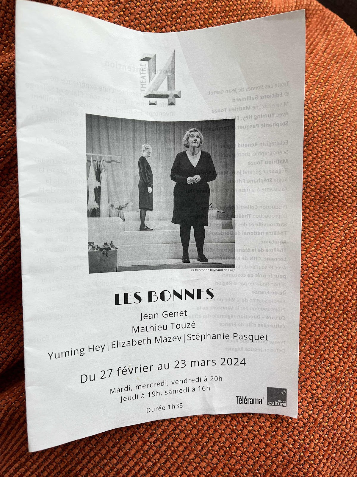 Ah oui c’était magique cette interconnexion entre public et acteurs auteur metteur en scène et toute l’équipe d’accueil du théâtre 14 pour la dernière des Bonnes. Tous les acteurs petit rôle y compris Le laitier si hiératique seul et nu, m’a fait penser à celui de drôle de drame et à ma première fois du jeu d’un petit rôle… lui un laitier moi une morte….